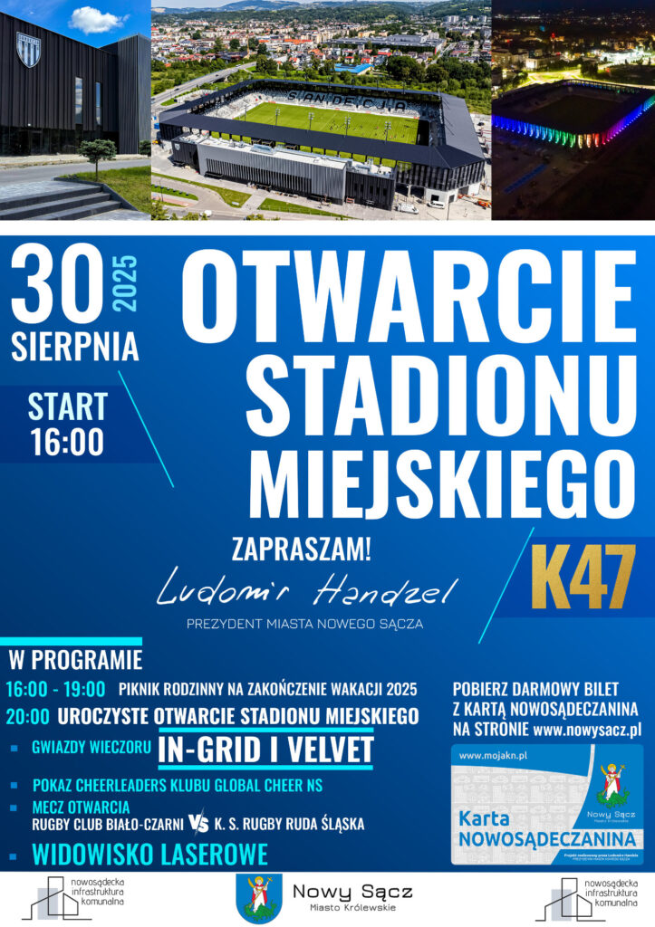 – Otwarcie Stadionu Miejskiego to wydarzenie, jakiego jeszcze nie było w Nowym Sączu. To nie tylko powód do dumy dla nas wszystkich, ale również okazja, aby razem świętować otwarcie obiektu, który będzie przestrzenią wspólnych spotkań i radości podczas wielu sportowych wydarzeń w najbliższych latach i dekadach – podkreśla Ludomir Handzel, Prezydent Miasta Nowego Sącza.