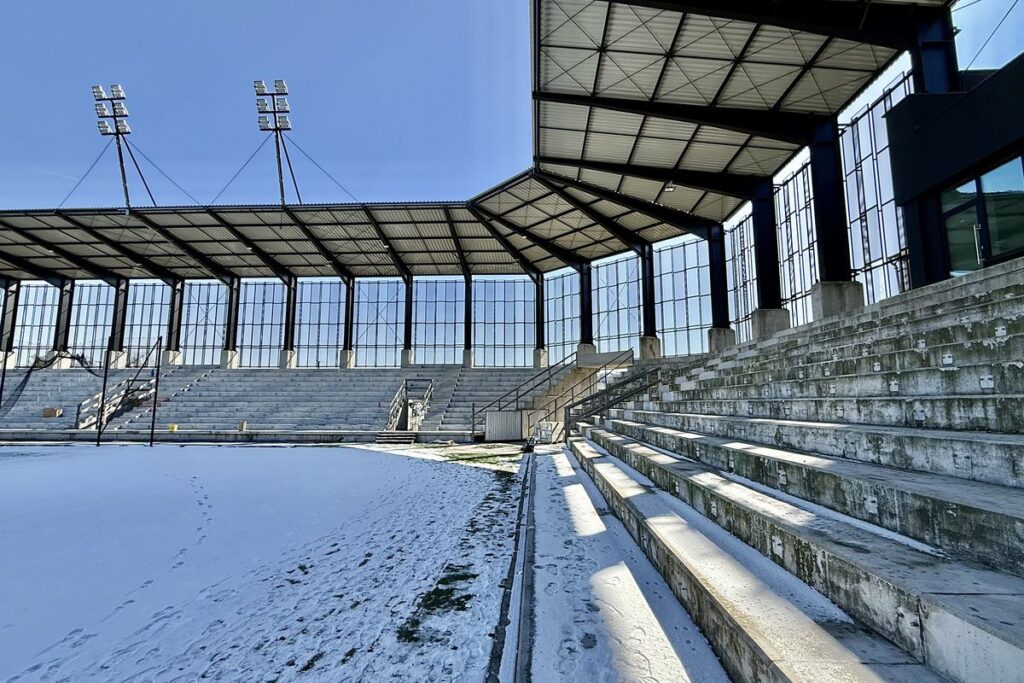 – Po zdemontowaniu krzesełek, wykonujemy ostatnie prace przygotowawcze do hydrofobizacji trybun. Jednocześnie pod trybuną A wylewane są posadzki, a wewnątrz budynku kontynuowane są prace wykończeniowe, które już niebawem pozwolą na przejście do etapu pozwalającego nadać już właściwą formę wizualną przygotowanych przestrzeni – mówi prezes Dawid Janik.