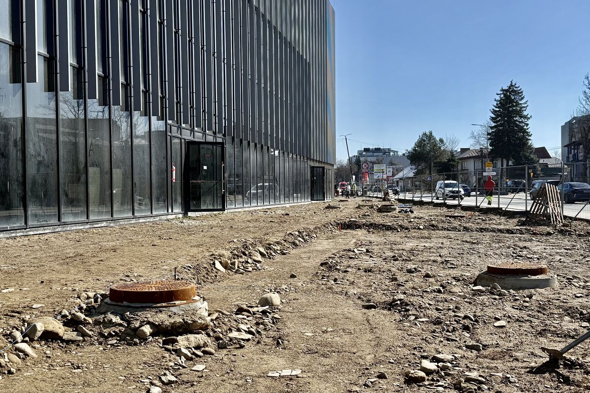 Zmienia się także przestrzeń wokół stadionu. Przed budynkiem A wzdłuż ulicy Kilińskiego zostało wykonane korytowanie, a na przygotowanej przestrzeni w przyszłym tygodniu będzie układana kostka brukowa.